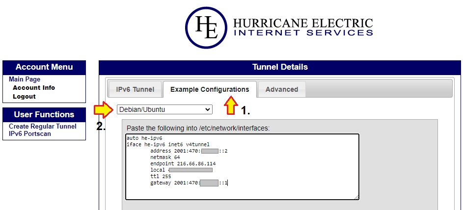 Da wir hier einen 6in4 Tunnel aufbauen und diesesn direkt als Netzwerkinterface auf unserem Host einrichten, benötigt Euer Server zwingend eine IPv4 Adresse, die theoretisch auch pingbar ist. Mit einem Server ohne IPv4 Adresse funktioniert diese Anleitung nicht! Auch via IP-Tunnel bezogene IPv4 Adressen können hier nicht für den 6in4 Tunnel als Gateway genutzt werden! Ein weiterer Punkt ist, dass Ihr die IPv6 Adresse Eures Servers nach der Einrichtung nicht mehr nutzen könnt, da der gesamte IPv6 Traffic durch den 6in4 Tunnel geleitet wird.
